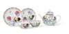 comprising: a teapot with associated lid, and two sets of cups and saucers, all similarly painted with cockerels with peony blossoms (5)