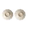 each finely potted, supported on a short splayed foot, the round sides terminated into foliate rim, covered overall in a white glaze with ivory tinge (2)