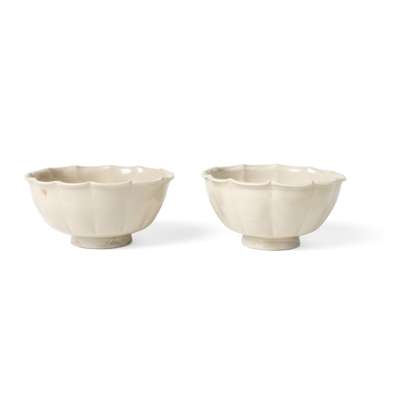 PAIR OF CHINESE WHITE GLAZED LOBED CUPS