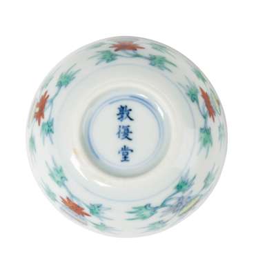清 敦復堂款 鬥彩蓮托五珍寶紋杯