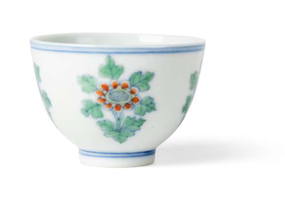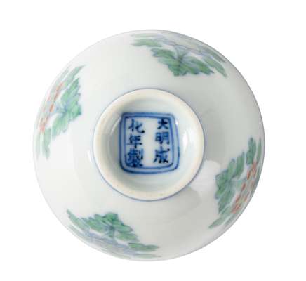 painted to the exterior with four floral sprays, the base inscribed with a six-character Chenghua mark within a double-square in underglaze blue
