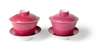 PAIR OF CHINESE RUBY-PINK-ENAMELLED TEA BOWLS WITH LIDS AND SAUCERS
