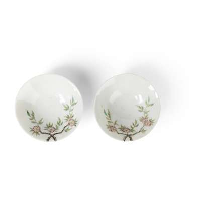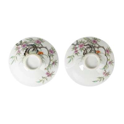 二十世紀 光緒款(磨) 粉彩過枝花斗笠茶碗(共兩件)