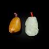 清 白玉帶皮巧雕瓜蝶紋 及 白玉帶皮籽料素面鼻煙壺(共兩件)