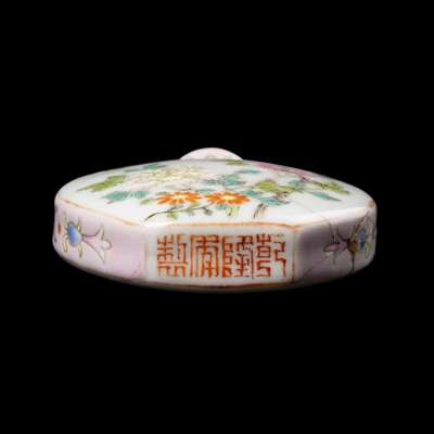清 乾隆款 粉彩芍藥花卉圖御製詩鼻煙壺