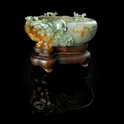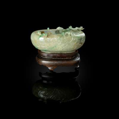 CHINESE APPLE GREEN JADEITE 'LOTUS POND' BRUSH WASHER