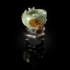 清末民國 翡翠高浮雕蓮池紋筆洗 帶嵌銀絲木座