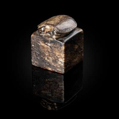 CHINESE CELADON JADE WITH RUSSET SKIN 'TURTLE' SEAL