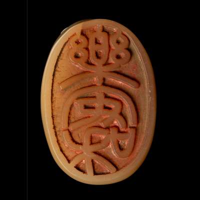清嘉慶 壽山石雕雙龍鈕橢圓印章