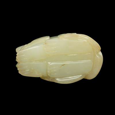 明 白玉帶皮雕天祿把件