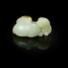 清 白玉帶皮雕雙佛獅把件