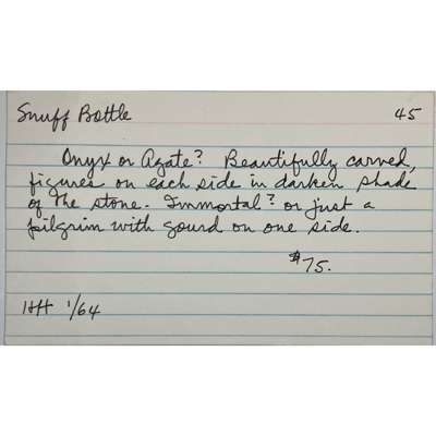 Collection of Prof. J. Gilbert & Cora McAllister, thence by descent based in England. With collector's handwritten note and Collector's Number 45 and 98. The ‘boy’ snuff bottle (98) acquired in March 1961; the ‘scholar’ one (45) acquired in January 1964; both acquired from Howard Hand.