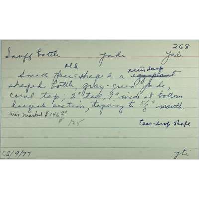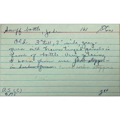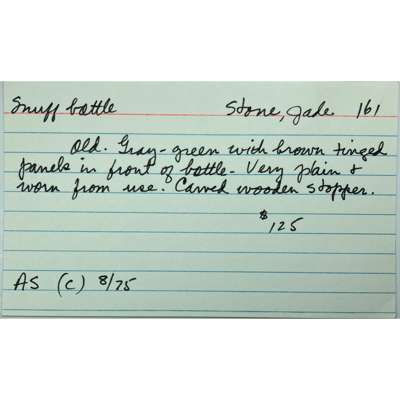 Collection of Prof. J. Gilbert & Cora McAllister, thence by descent based in England. With collector's handwritten note and Collector's Number 125, 161, 268. The tear-shape snuff bottle (268) acquired in September 1977 from or via “CS”; the triangular one (161) acquired in August 1975 from or via “AS”.