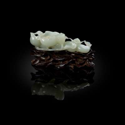 清 青白玉雕白鷺蓮池筆擱 帶透雕蓮池木座