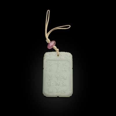 CHINESE WHITE JADE INSCRIBED RECTANGULAR PLAQUE