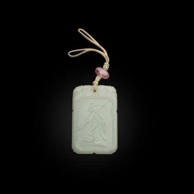 清 白玉雕武士長槍詩文長方牌
