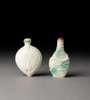 清 瓷胎模製白釉心形花卉紋 及 綠白釉海水龍紋鼻煙壺(共兩件)