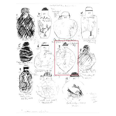 Several moulded biscuit porcelain leaf-form snuff bottles, comparable to the present heart-shaped one: one dated to 1800-1850, exhibited and illustrated in Zhongguo bi yan hu Chinese snuff bottles: Hong Kong Museum of Art 15 Oct.-26 Nov. 1977, 1977. p. 44 no 68; and one in the J & J collection, dated 1770-1840, illustrated in Moss et al., The Art of the Chinese Snuff Bottle, the J & J Collection, volume 1, no 236; another was in the property of Dr. Martin Roshco, dated to 1780-1830, was sold at Bonhams New York, 20 March 2012, lot 29.