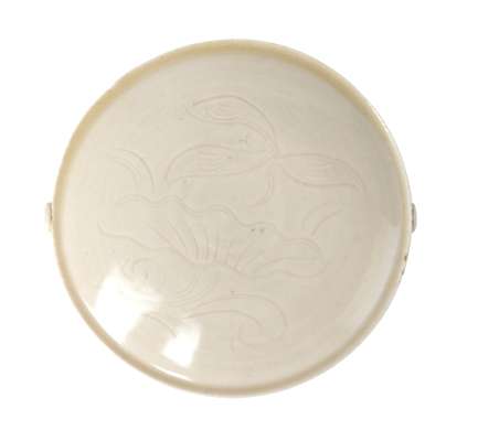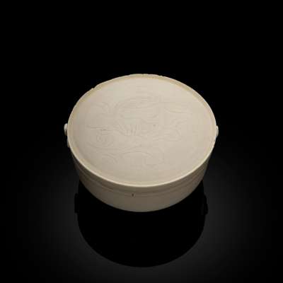 北宋 定窯白釉刻蓮池紋圓形蓋盒