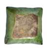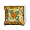 of square form, moulded to the interior with a stylised chrysanthemum blossom and leafy tendrils in amber and green tones on a cream ground, the rim further decorated with flowers and tendrils, the green glaze covers the sides of the exterior and falls short of the base to reveal the buff pottery body