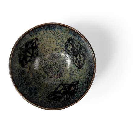 The unusual variegated milky blue and buff glaze of the present example makes it stand out from the other typical brown and buff glaze Jizhou paper-cut resist-decorated bowl. For other comparable Jizhou bowls with similar glaze colours, dated to the Southern Song dynasty, see: one sold at Christie's New York, 15 Sep 2011, lot 1462; the one was from the T.Y. Chao Family Collection and sold at Sotheby's Hong Kong, 30 November 2017, lot 413.