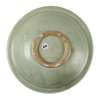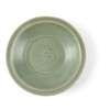 the shallow, rounded sides raised from the short foot to everted rim, the centre of the interior with relief-decorated two small fish, all under a glaze of sea-green colour