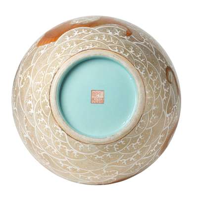 清 乾隆款 礬紅描金魚龍幻化圖大天球瓶