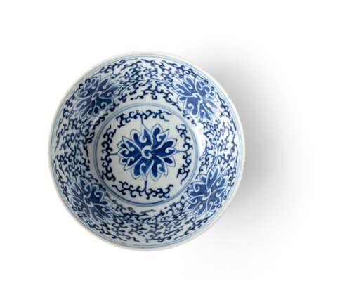 CHINESE CAFÉ-AU-LAIT-GLAZED AND UNDERGLAZE BLUE 'LOTUS' BOWL