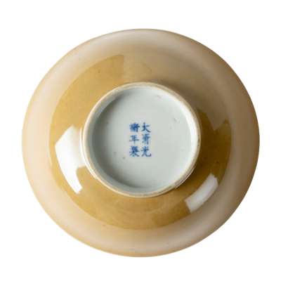清光緒款及年代 外米黃釉內青花蓮紋碗
