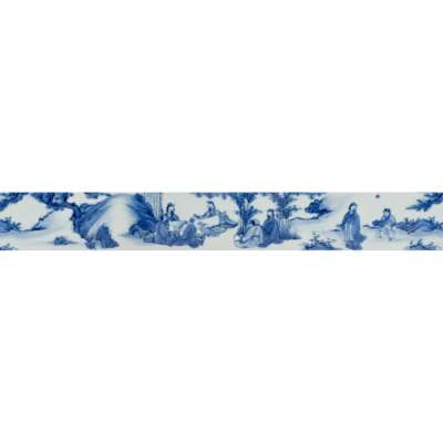 Seven Sages of the Bamboo Grove were a renowned group of Chinese scholars, poets, and musicians from the late Wei and Jin dynasty (circa 3rd century AD) who sought refuge from the political turmoil and social constraints of their time by retreating to a life of artistic and intellectual freedom in the natural seclusion of a bamboo grove. For related blue and white wares painted with this motif, all dated to the Ming dynasty, Chongzhen period, see an important and large brush pot, previously in the Marsh collection, sold at Bonhams Hong Kong, 27 November 2024, lot 8; Another large brushpot, sold at Sotheby's New York, 19 March 2024, lot 324; and a vase, sold at Bonhams London, 12 May 2016, lot 41.