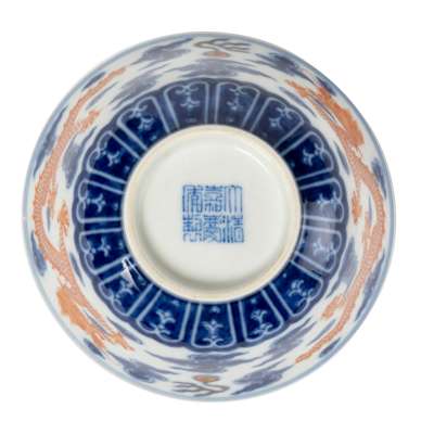 清嘉慶款及年代 青花礬紅彩五爪龍紋碗