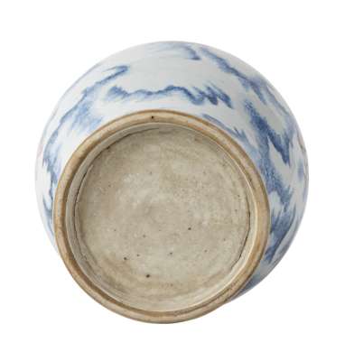 of ovoid form, finely painted with a red five-clawed dragon emerging from clouds
