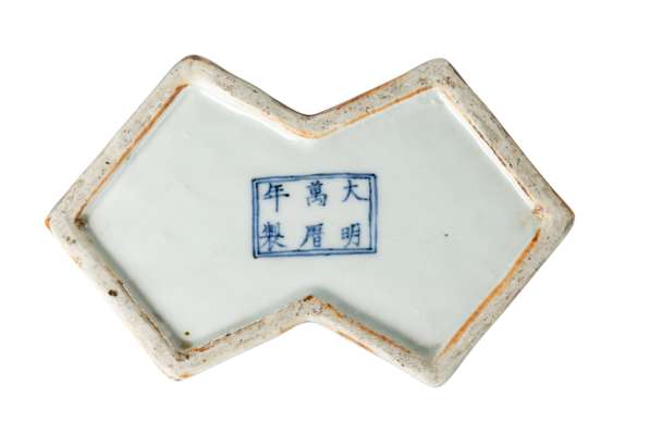 明 萬曆款 青花雙龍戲珠紋方勝型蓋盒