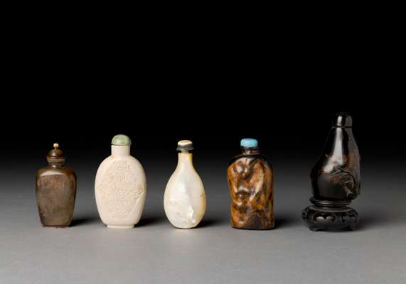 十九至二十世紀 各式鼻煙壺(共五件)帶一木座