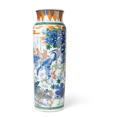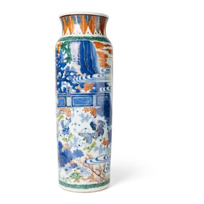 清 青花加彩仕女舞蹈圖筒瓶