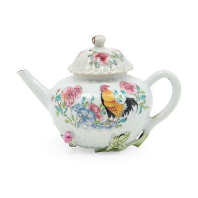 [PRIVATE SCOTTISH COLLECTION] CHINESE FAMILLE ROSE MOULDED 'COCKEREL' TEAPOT WITH COVER