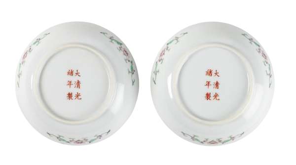 十九至二十世紀 光緒款 粉彩花卉蟋蟀紋碟(共兩件)
