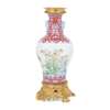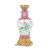 嘉慶款或到代 粉彩三陽開泰瓶 銅鎏金鑲足及包口