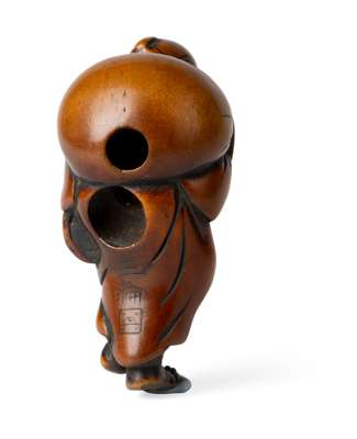 Possibly by Miwa Yukan (late 18th century). He called himself Kinokuniya Shozaemon and lived in Sekiguchi, Tokyo. Made netsuke as a hobby, with subject matter from the familiar Japanese scene. Did not polish or lacquer his carvings. Lived in Tenmei, 1781-1789. Or Miwa Chosen, the son and successor of Miwa Yukan, who continued the family style.