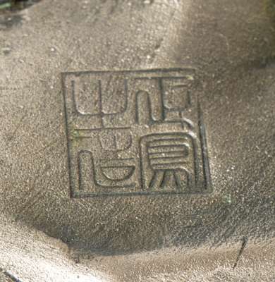 明治 正鳳之造款 白銅捕蟹人置物