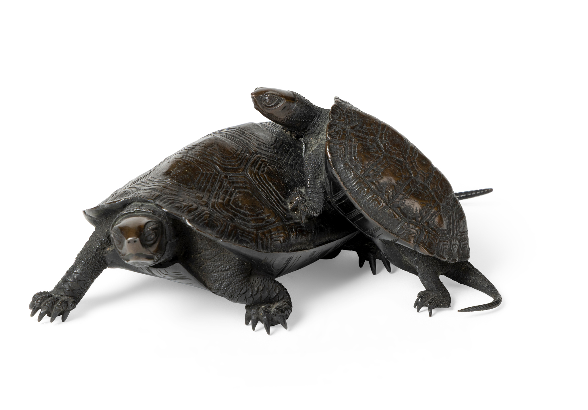 [PRIVATE ENGLISH COLLECTION, ENGLAND] JAPANESE BRONZE OKIMONO OF TORTOISE GROUP