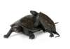 realistically rendered with a smaller turtle climbing on the larger one, the base signed ‘Bishin’