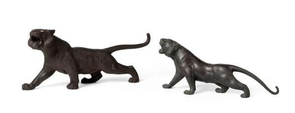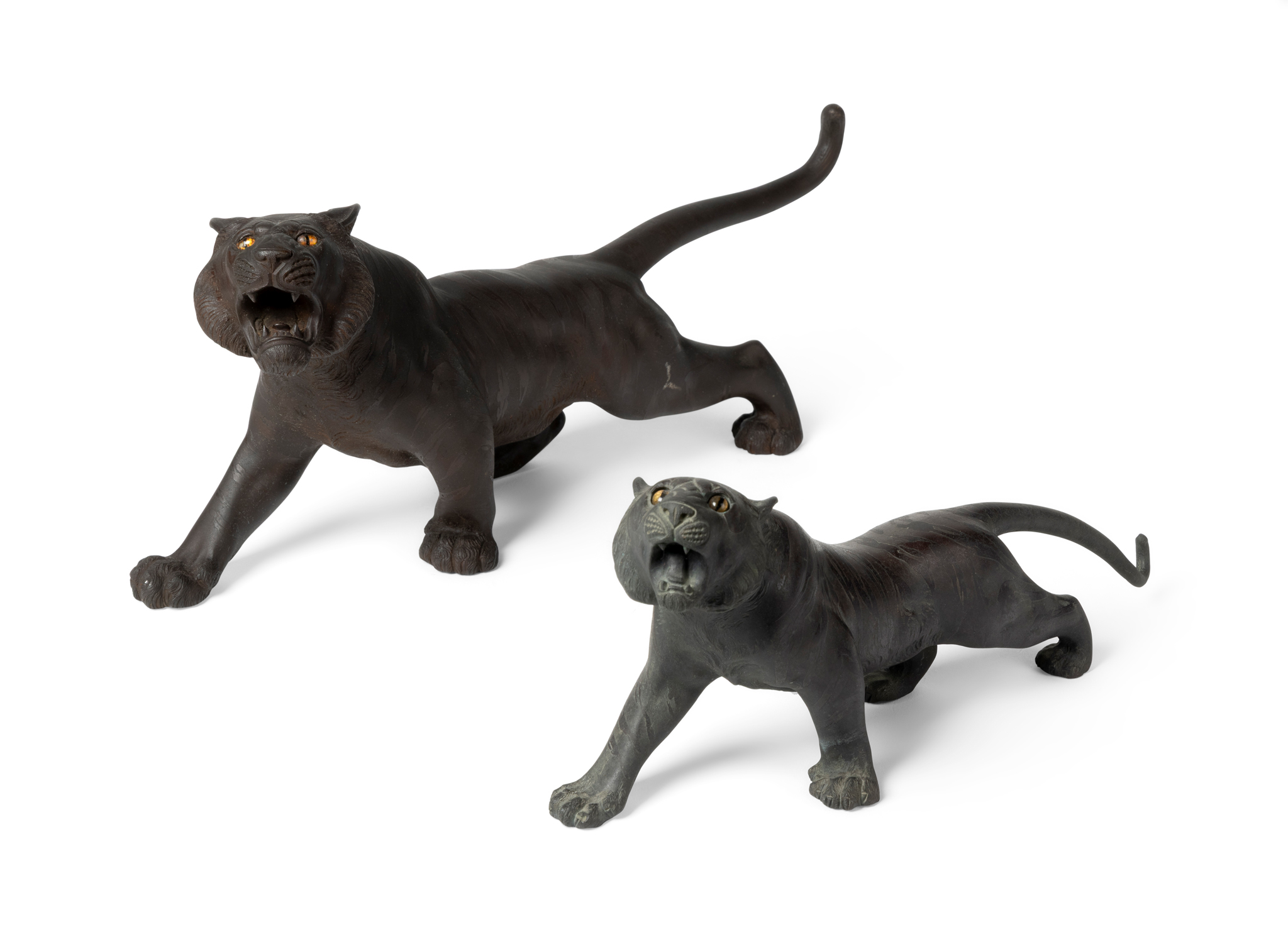 [PRIVATE ENGLISH COLLECTION, ENGLAND] TWO JAPANESE BRONZE OKIMONO OF TIGERS
