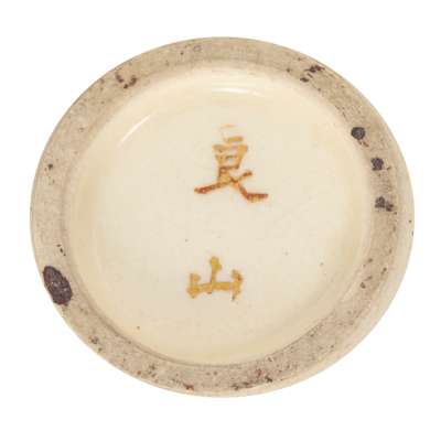 of tappered form, finely painted with figures on the lower register and in roundels on the upper register, the base marked ‘Ryosan’
