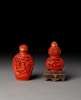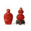 [COLLECTION OF PROF. J. GILBERT & CORA MCALLISTER] TWO CHINESE CARVED CINNABAR LACQUER SNUFF BOTTLES