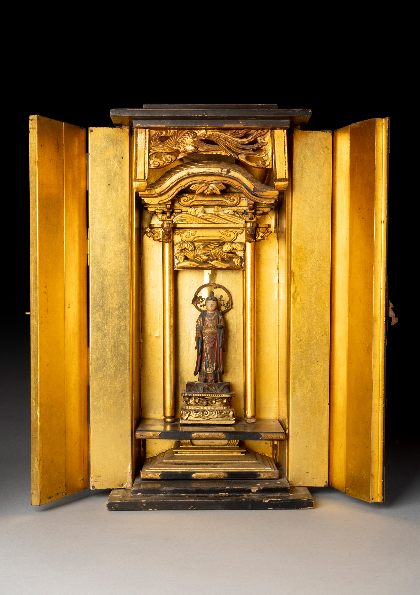 [COLLECTION OF PROF. J. GILBERT & CORA MCALLISTER] LARGE JAPANESE LACQUER ZUSHI OF A DEITY