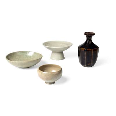 高麗王朝及更晚 各式單色釉瓶、碗、高足碗(共四件)