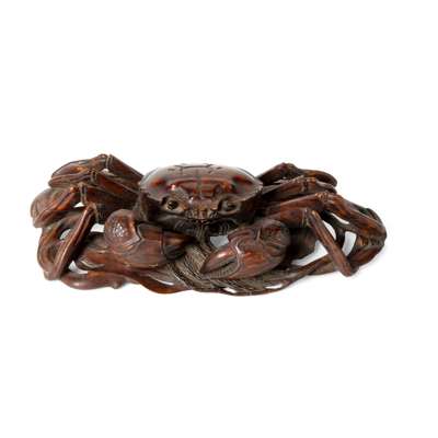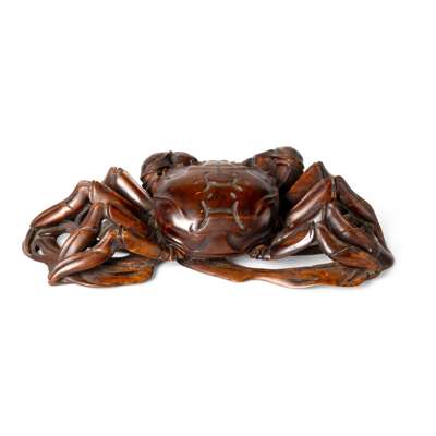 CHINESE CARVED BOXWOOD OF A CRAB