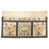 of rectangular form, lower larger register in three square panels, the centre decorated with a pagoda with an altar offering six candles flanking a goblet below a Christogram ‘IHS’, flanked by two panels decorated with phoenixes and flowers, all below a rectangular panel decorated with birds, flowers and butterflies, surmounted with a cotton band