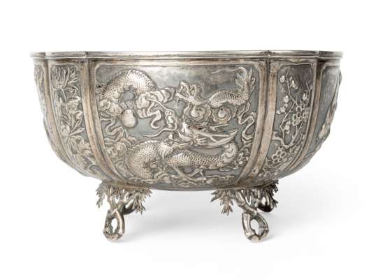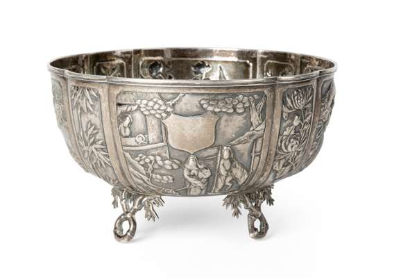CHINESE EXPORT SILVER TRIPOD BOWL